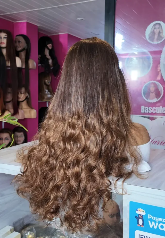 Vietnamienne couleur miel ombré, frontale 13×4 bouclée d’origine, longueur 24